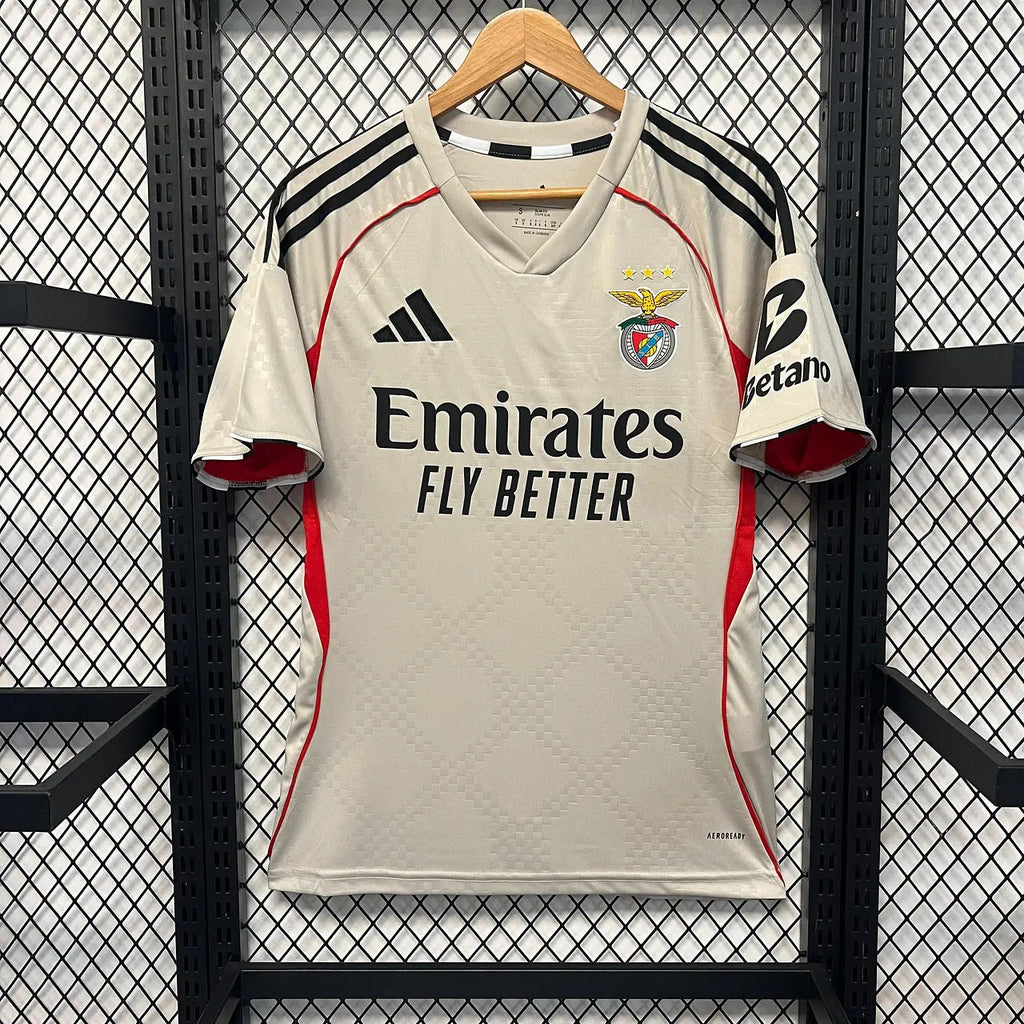 🔥 Garante já a tua camisola de futebol SL Benfica Alternativa Bege 25/26 – um equipamento que alia inovação, tradição e estilo benfiquista!